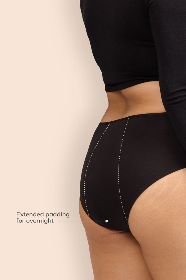 Our multi-layer absorbent tech absorbs up to 6 pads worth of flow. We have styles for each day of your cycle.