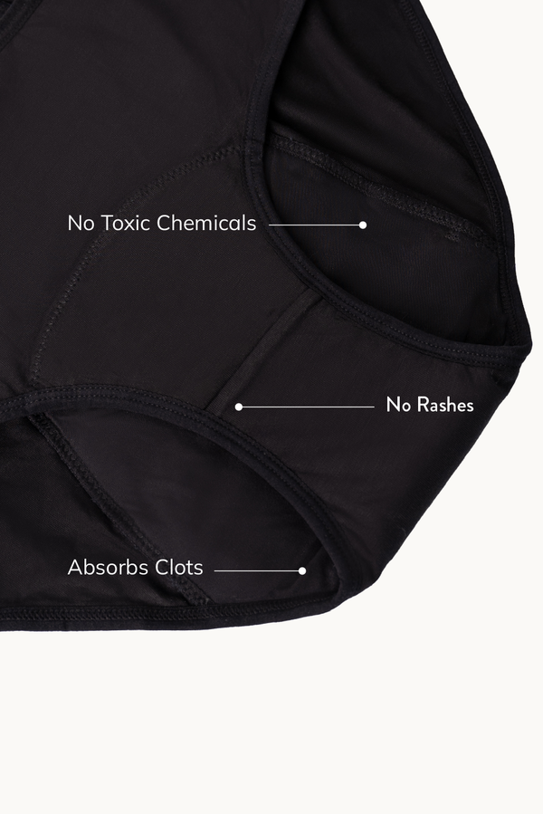 We have period panties in 3 absorbency levels to cater to the heaviest of flows! Check out absorbency details to know more.