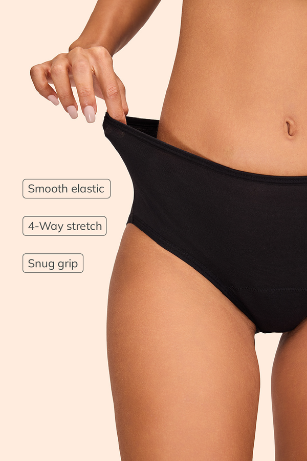 We have period panties in 3 absorbency levels to cater to the heaviest of flows! Check out absorbency details to know more.