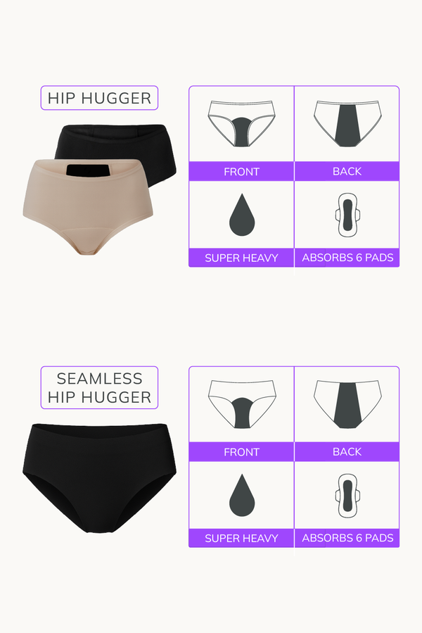 We have period panties in 3 absorbency levels to cater to the heaviest of flows! Check out absorbency details to know more.