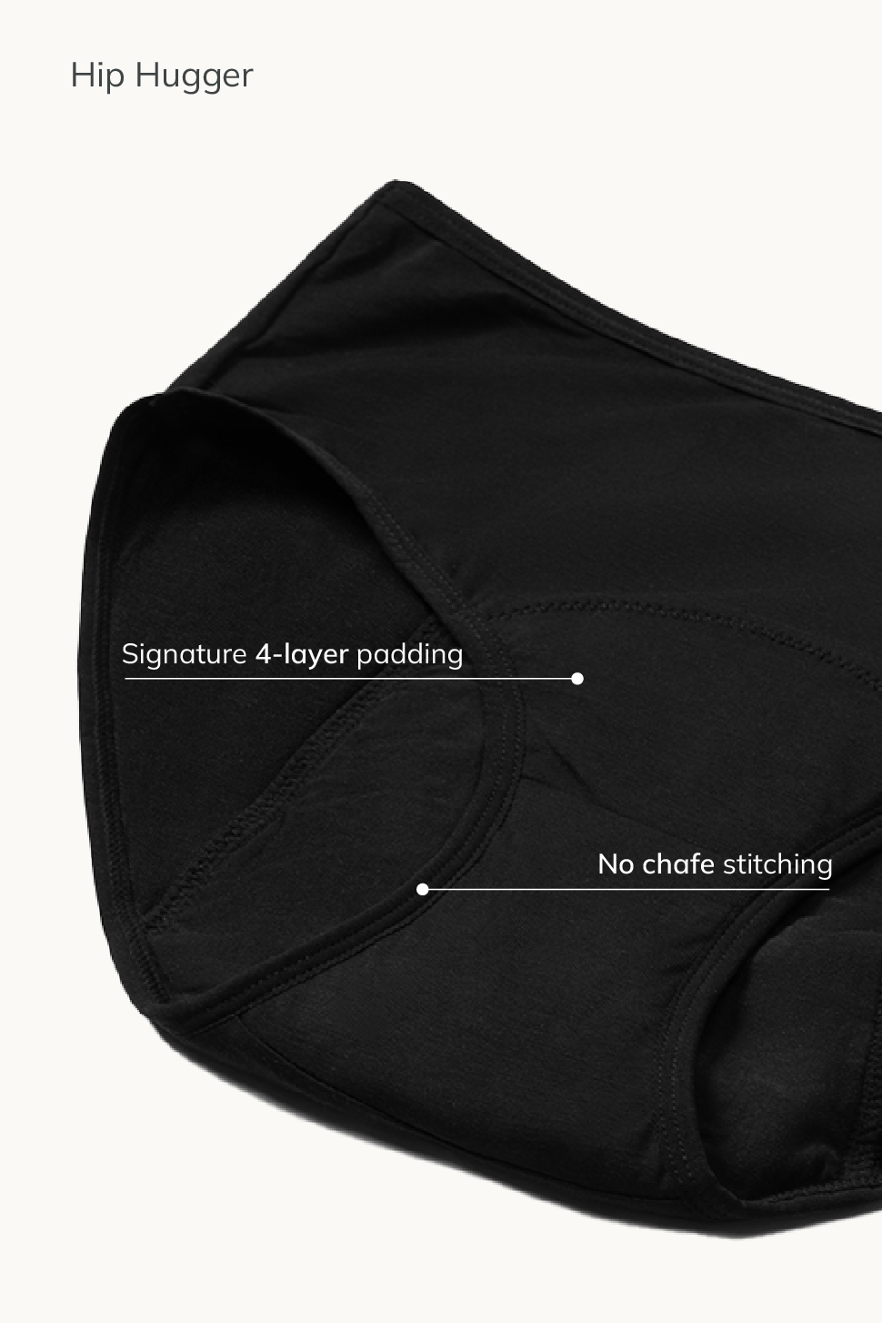 हमारी पैडेड पैंटीज़ में चार अवशोषक परतें होती हैं जो आपके प्रवाह को प्रभावी ढंग से सोखने के लिए डिज़ाइन की गई हैं। अधिक जानकारी के लिए, हमारा "यह कैसे काम करता है" पृष्ठ देखें।
