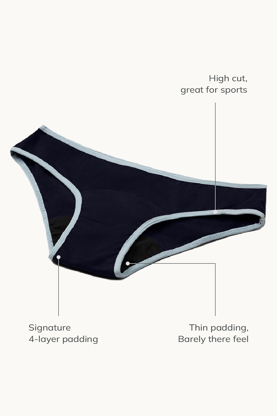 Our multi-layer absorbent tech absorbs up to 6 pads worth of flow. We have styles for each day of your cycle.