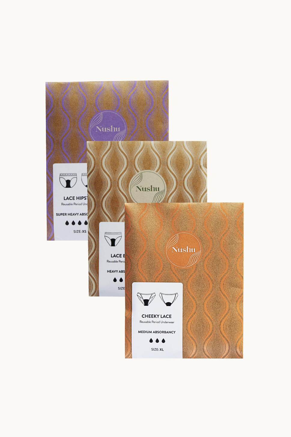 We have period panties in 3 absorbency levels to cater to the heaviest of flows! Check out absorbency details to know more.