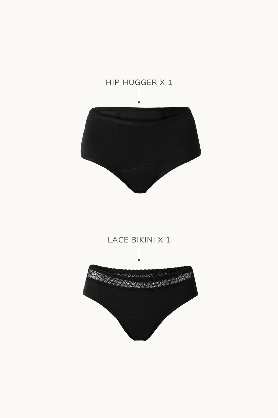 Contains: Hip Hugger, Bikini Brief